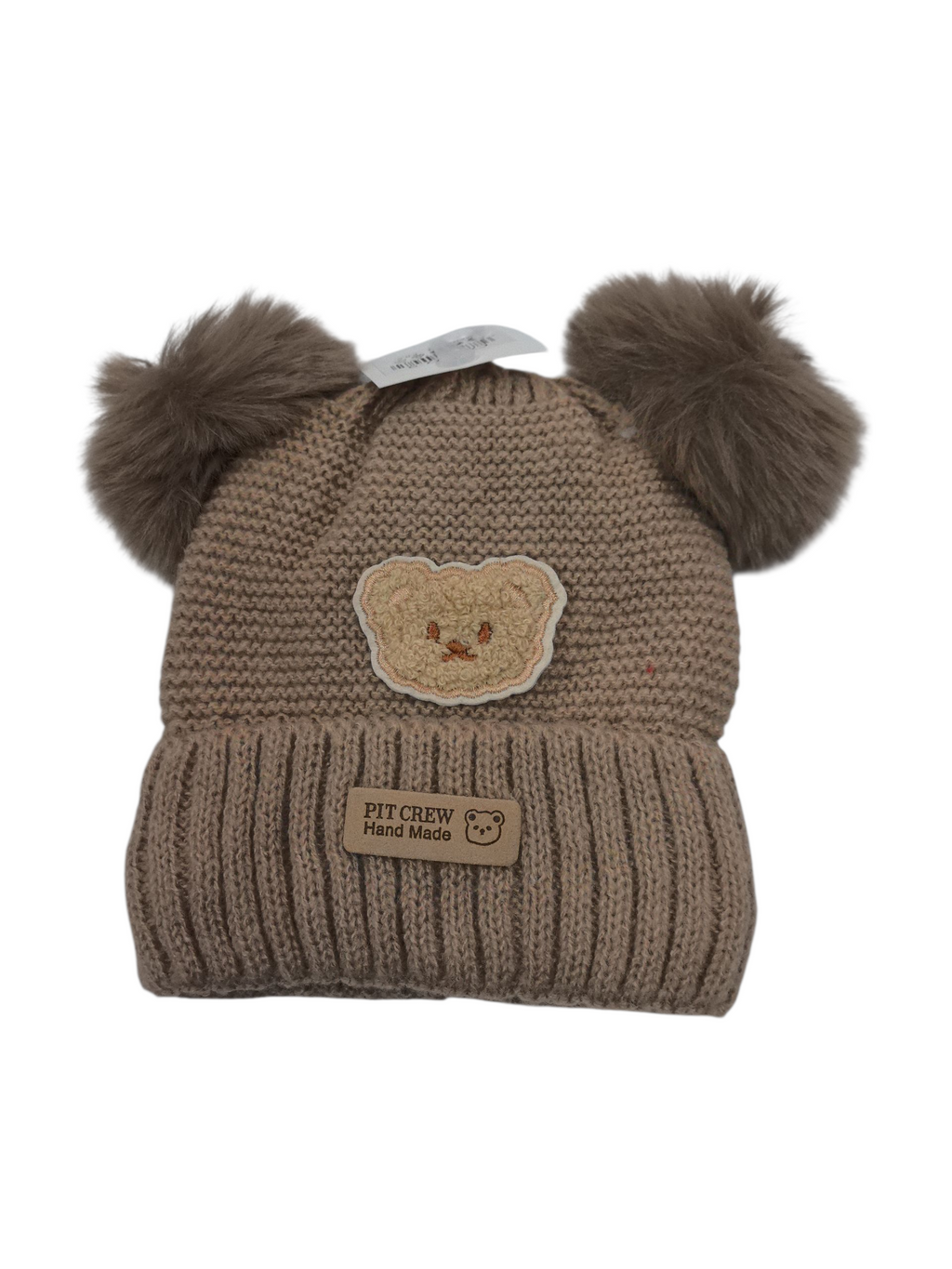 Bonnet double pompon motif ours (x12)