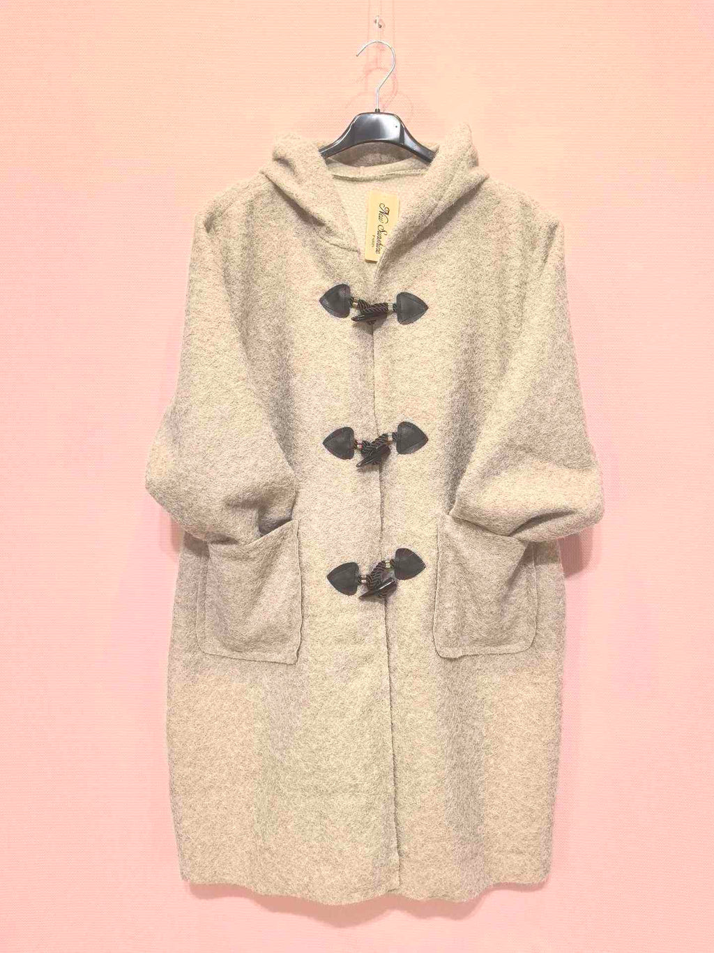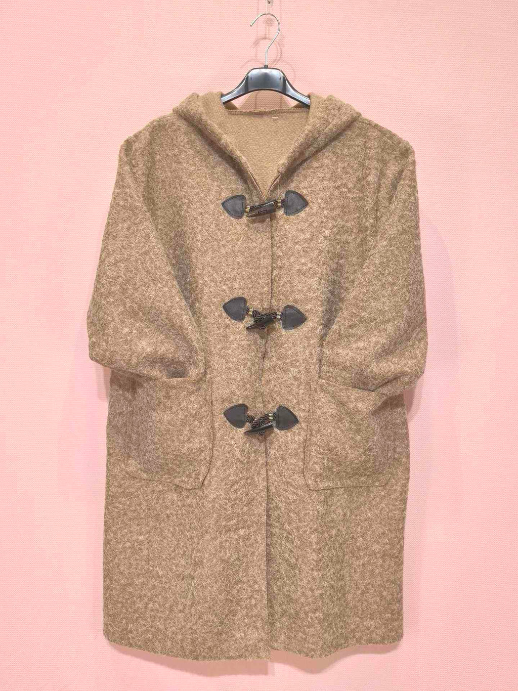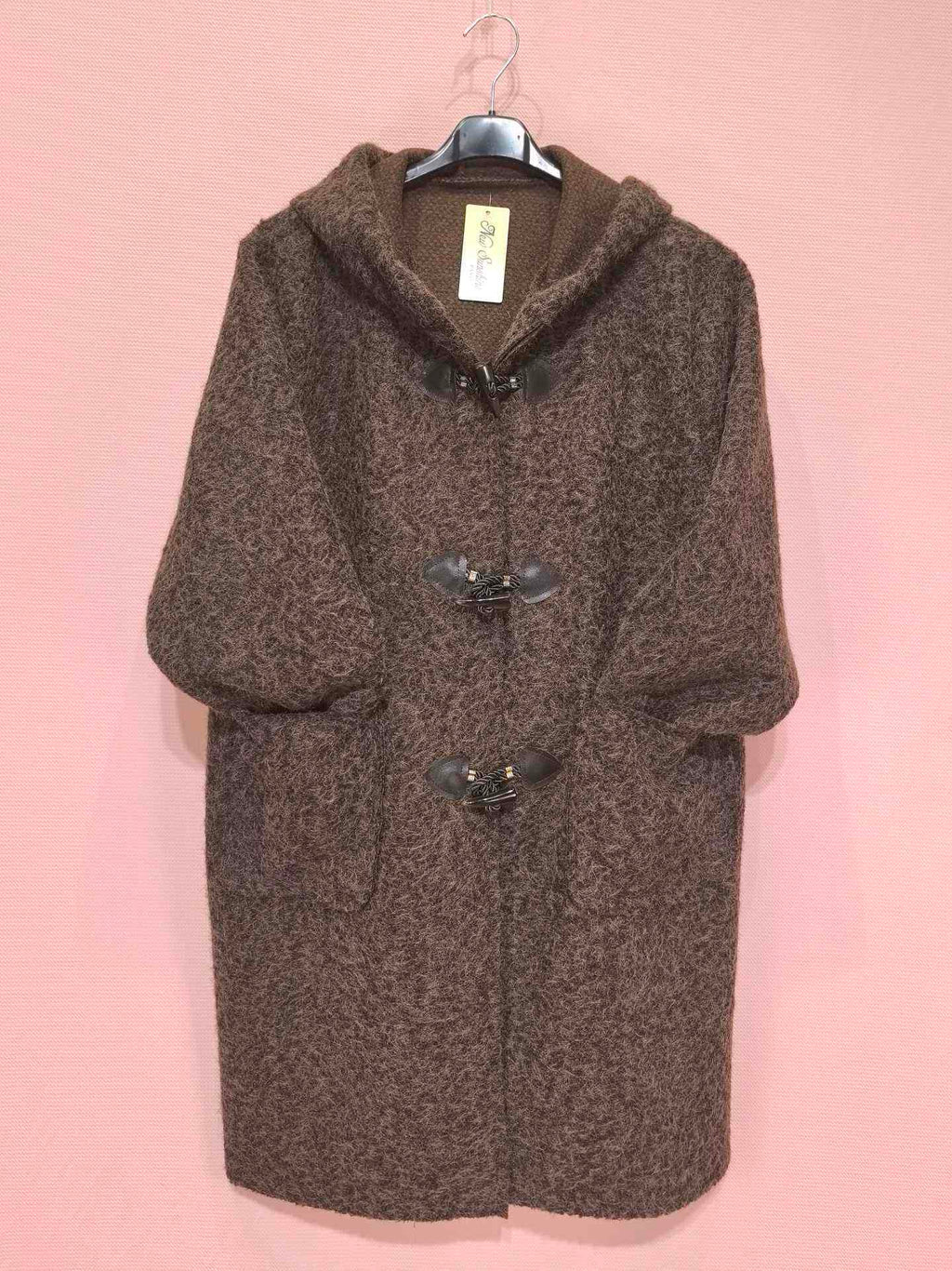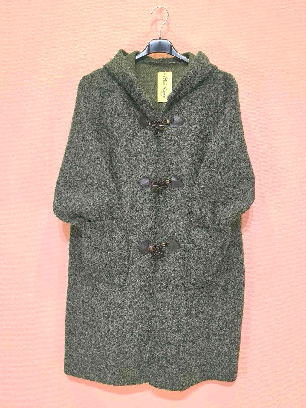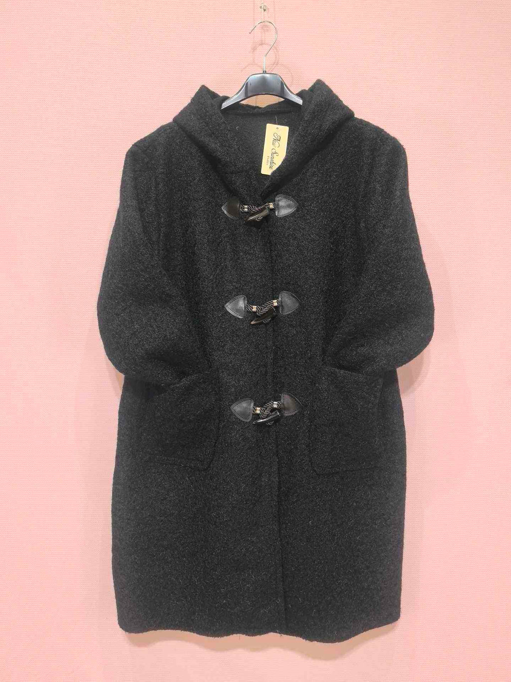 Manteau à capuche en laine bouclée avec fermetures brandebourgs (x5)