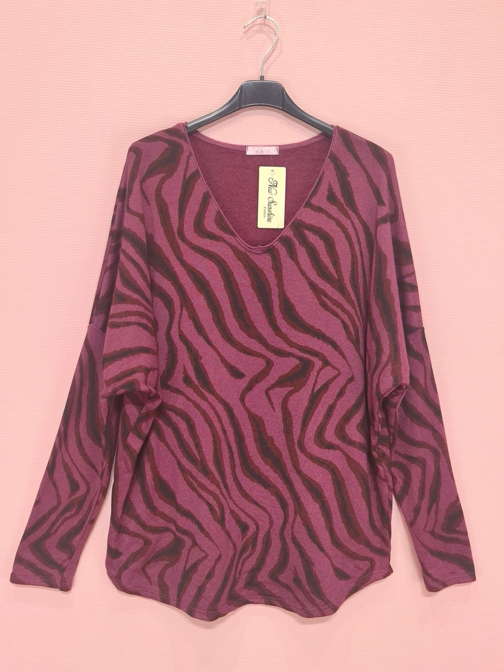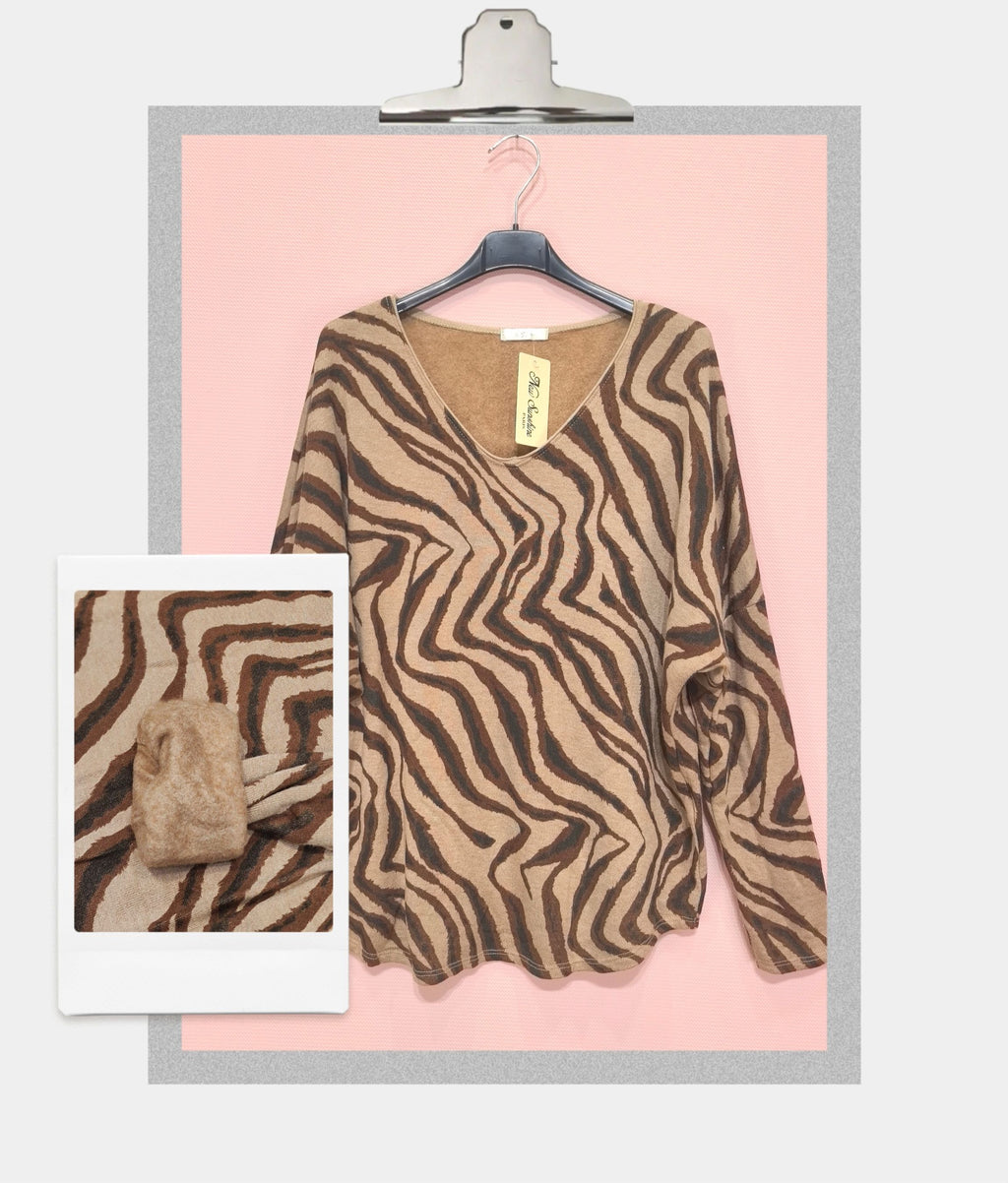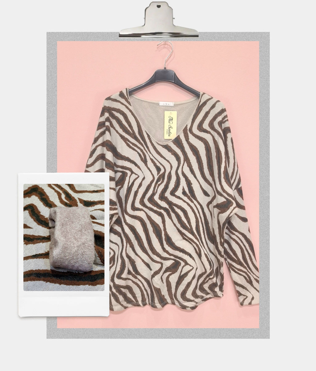T-shirt oversize manches longues intérieur doux imprimé zèbre (x8)
